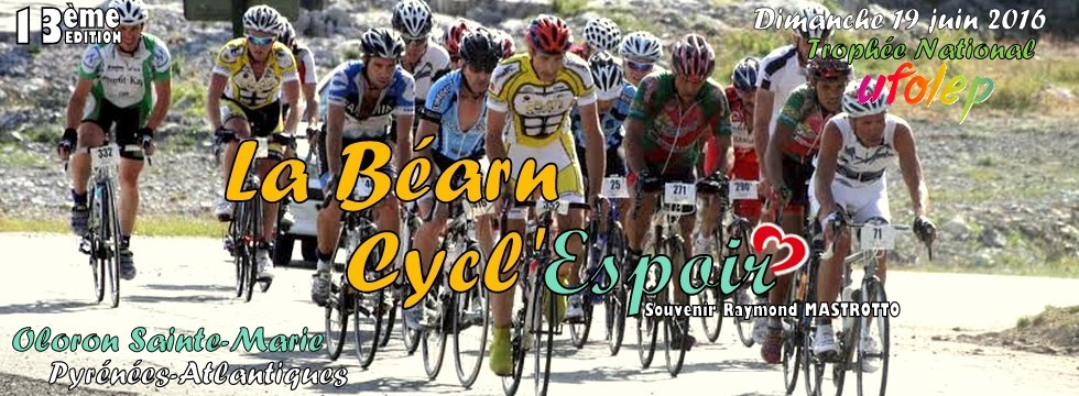 Le mot du Maire d’Oloron Sainte-Marie Pour la sixième fois, le 19 juin 2016, Oloron Sainte-Marie classée depuis quelques années « Ville la plus sportive de France", accueille La Béarn Cycl'Espoir. Il faut tout d'abord féliciter ses organisateurs, les bénévoles si dévoués du Comité départemental UFOLEP 64. Il faut aussi féliciter ses initiateurs. En alliant le sport aux notions de fraternité, générosité et solidarité, ils ont su mettre en avant ce qui nous rend pleinement hommes : le dépassement de soi au service des autres. Nous sommes heureux, en tant qu'élus, de témoigner, en accueillant La Béarn Cycl'Espoir, notre accord total avec cette belle cause à la fois sportive et humanitaire. Nos employés communaux ne ménageront pas leurs efforts pour la réussite de cette manifestation. Peut-on dire en souriant qu'un arrêté municipal a été pris pour qu'il fasse beau ! Gageons en tout cas la beauté et la variété de nos paysages basques et béarnais sauront ravir les participants. Que cette belle journée soit un succès et que la recherche tire bénéfice de l'effort conjugué de tous ceux qui savent que le sport rime avec générosité !
